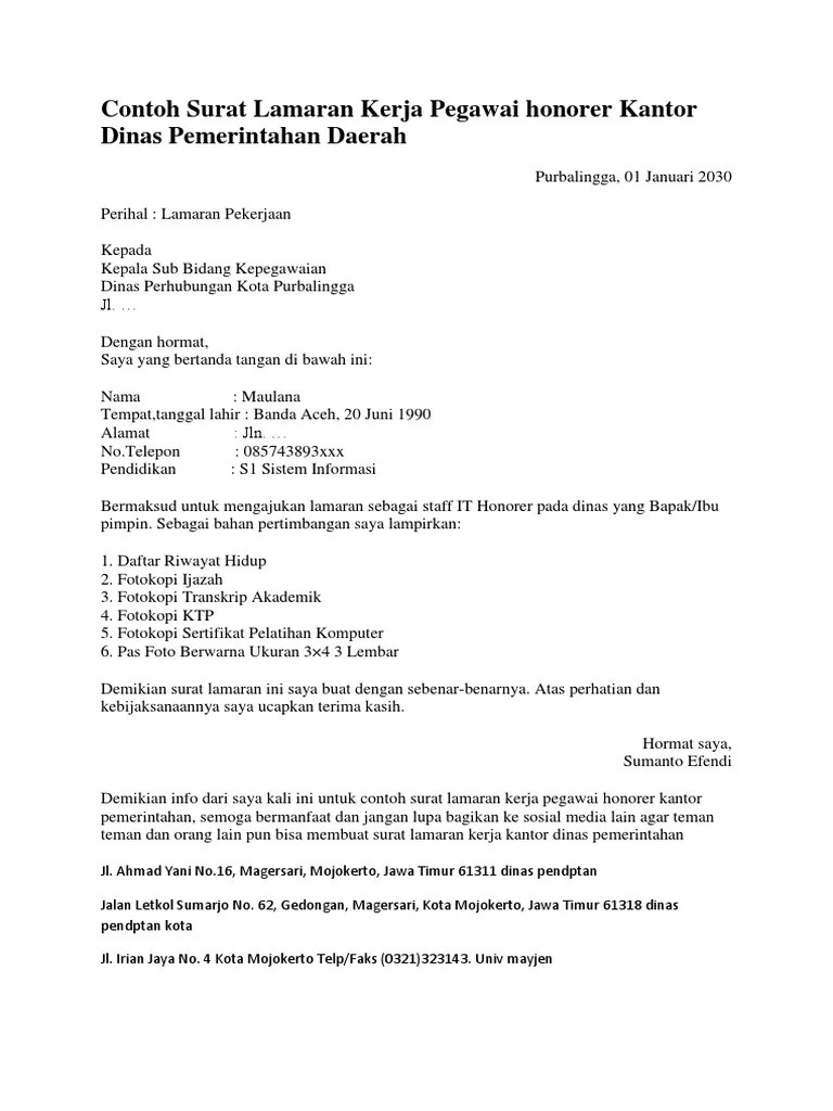 Inilah pembahasan selengkapnya mengenai contoh surat lamaran kerja honorer dinas pendidikan.